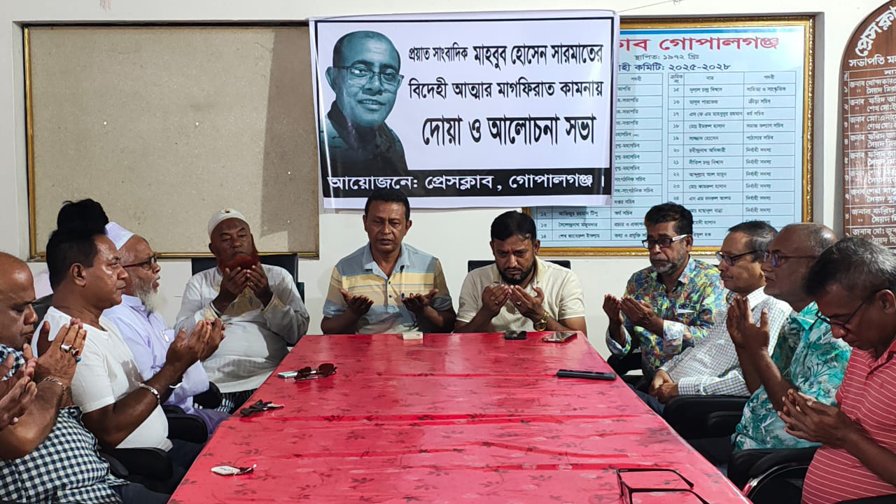 প্রেসক্লাব গোপালগঞ্জে সাংবাদিক মাহবুব হোসেন সারমাতের আত্মার মাগফিরাত কামনায় দোয়া ও আলোচনা সভা
