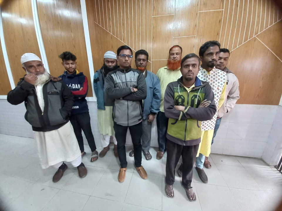 গ্রেফতারকৃতরা হলো বগুড়া শহরের সাবগ্রাম এলাকার মমতাজ উদ্দিনের ছেলে মোঃ সেলিম রেজা (৫২), ফুলবাড়ি এলাকার আব্দুর রাজ্জাকের ছেলে মোঃ নবীন হোসেন (২৭), বৃন্দাবনপাড়া এলাকার মমতাজ এর ছেলে মোঃ আশরাফ (৫৫), লতিফপুর কলোনী এলাকার মৃত আবুল কাশেম মন্ডলের ছেলে মোঃ রাজু হোসেন (৫০), শামিম গ্রাফিক্স এর কর্মচারি সদরের সাবগ্রাম এলাকার মমতাজ এর ছেলে মোঃ সেলিম (৫২), বাদুরতলার মোজাম্মেল হকের ছেলে মিজানুর (৩৬), সদরের ফাঁপোড় এলাকার বেলাল হোসেনের ছেলে নাহিদ ইসলাম (১৮), মজনু স্ক্রীন প্রিন্ট এর কর্মচারি কাহালুর পাইকড় এলাকার আমির হোসেনের ছেলে মজনু (৩০) ও নিশিন্দারার আব্দুল মজিদের ছেলে মো: মামুন (৩০)।